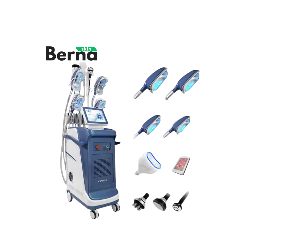 Cette machine professionnelle combine 5 technologies avancées pour un remodelage complet du corps : Cryolipolyse 360°, Lipolaser, Cavitation 40KHz, Radiofréquence (RF) et Aspiration sous vide. Équipée de 4 bras fonctionnant simultanément et de 5 pièces à main interchangeables, elle permet de traiter efficacement abdomen, cuisses, bras, dos, taille et menton.